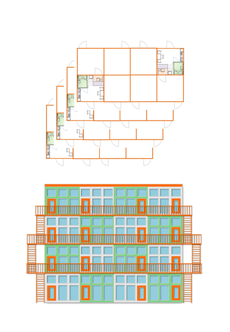 Von der Tragkonstruktion bis zur selbst-klebenden Tapete: FLIX HOUSE verfügt über eine 100% Material-Mobilität, die auch einen kompletten Abbau und erneuten Aufbau der Objekte ermöglicht.